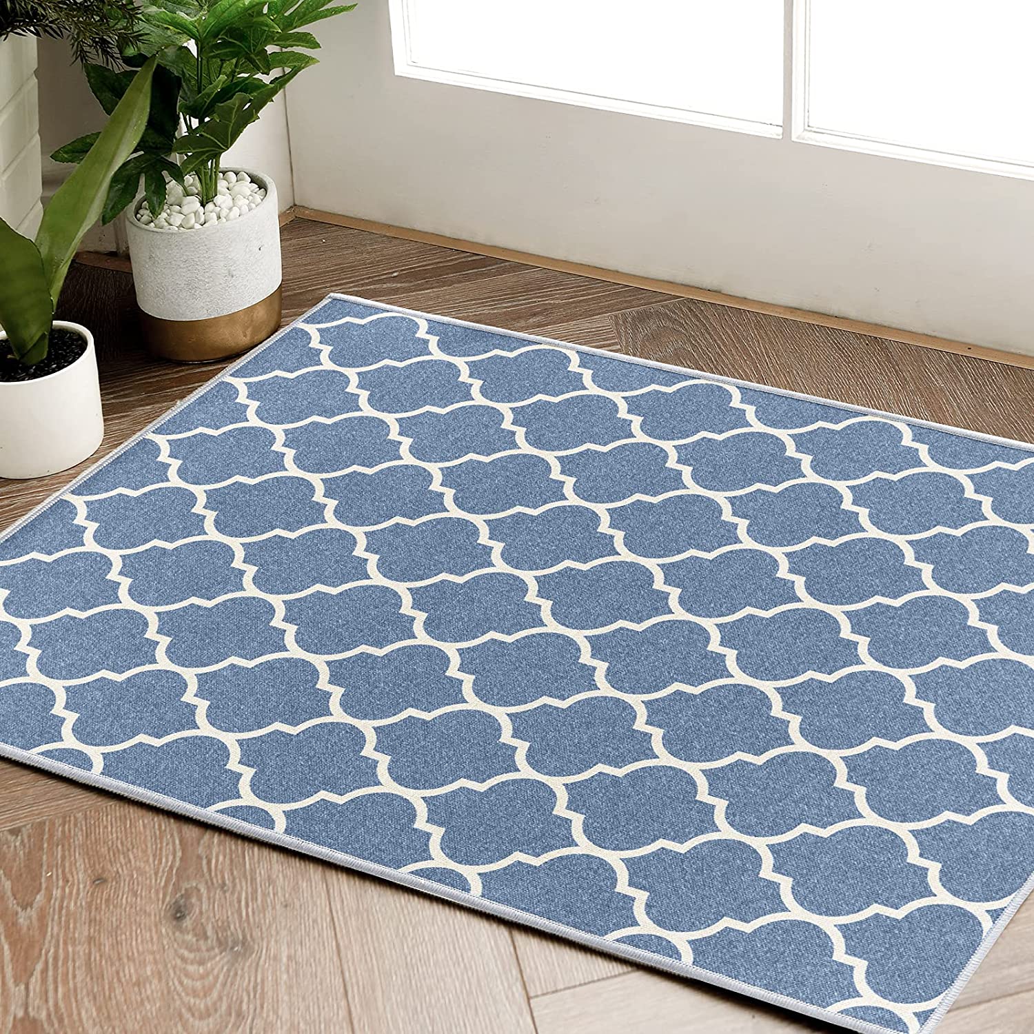 Door Mat 2x3 Area Rug Kitchen Rug Moroccan Tile Indoor Rug Diamond Floor Cover Geometric Accent Rug Soft Mat Doormat Bathroom Rug Carpet Living Room Bedroom Blue On Beige Walmart Com
