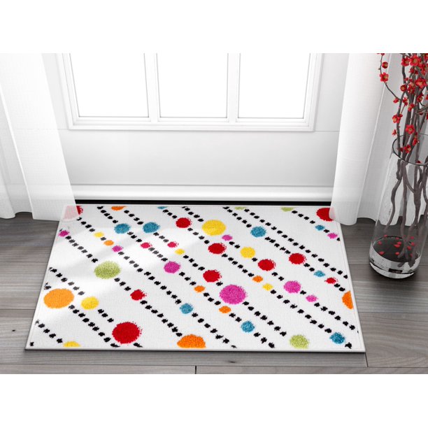 Well Woven Small Rug Mat Doormat Modern Kids Room Kitchen Rug Dandy Dots Stripes Ivory 1 8 X 2 7 Accent Area Rug Entry Way Bright Carpet Bathroom Soft Durable Walmart Com