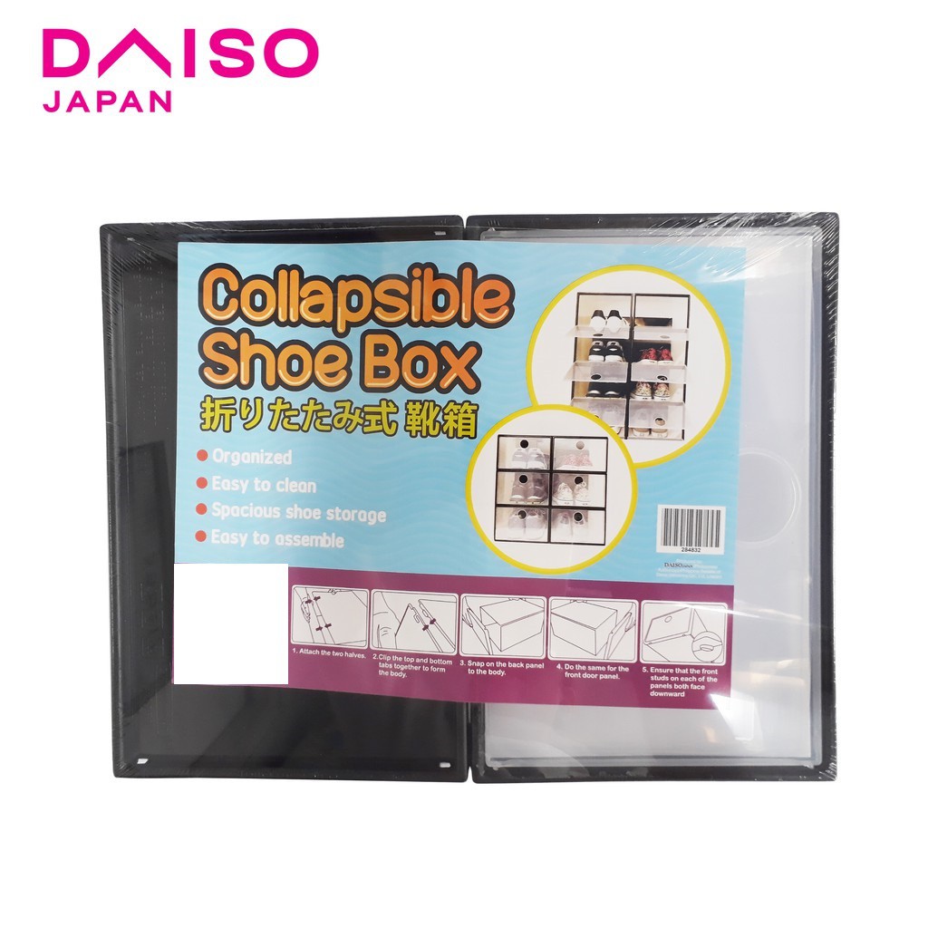 Daiso Japan Clear Collapsible Shoe Box Shelve Foldable Portable Organizer Room Item Storage Shopee Philippines