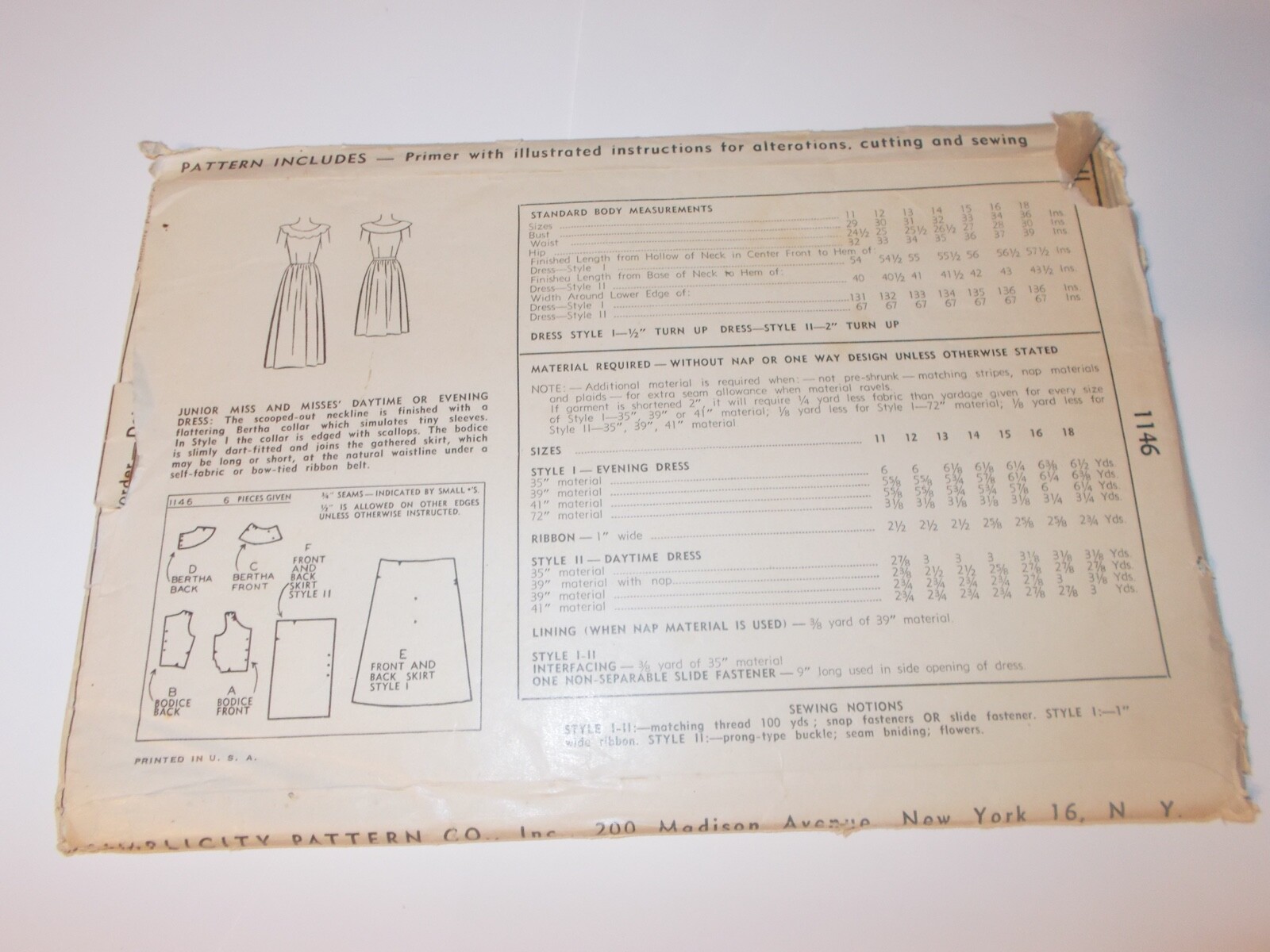 Vtg Simplicity Pattern 1146 Misses Daytime Or Evening Dress Size 11 Bust 29 Ebay